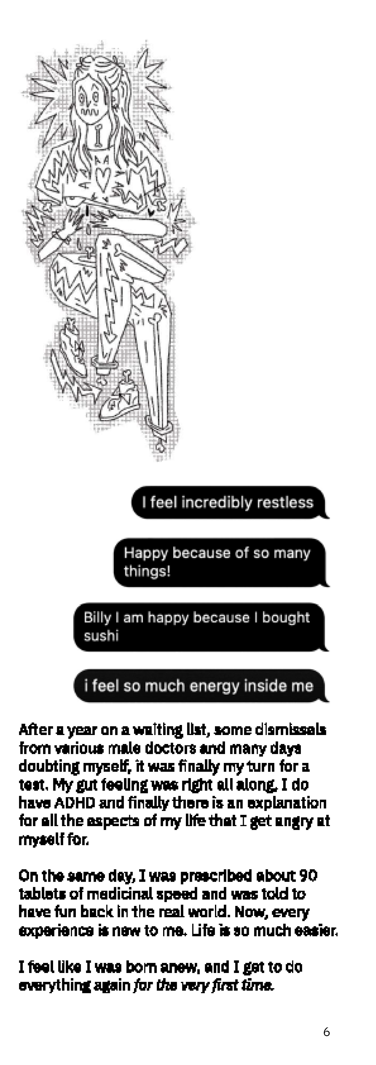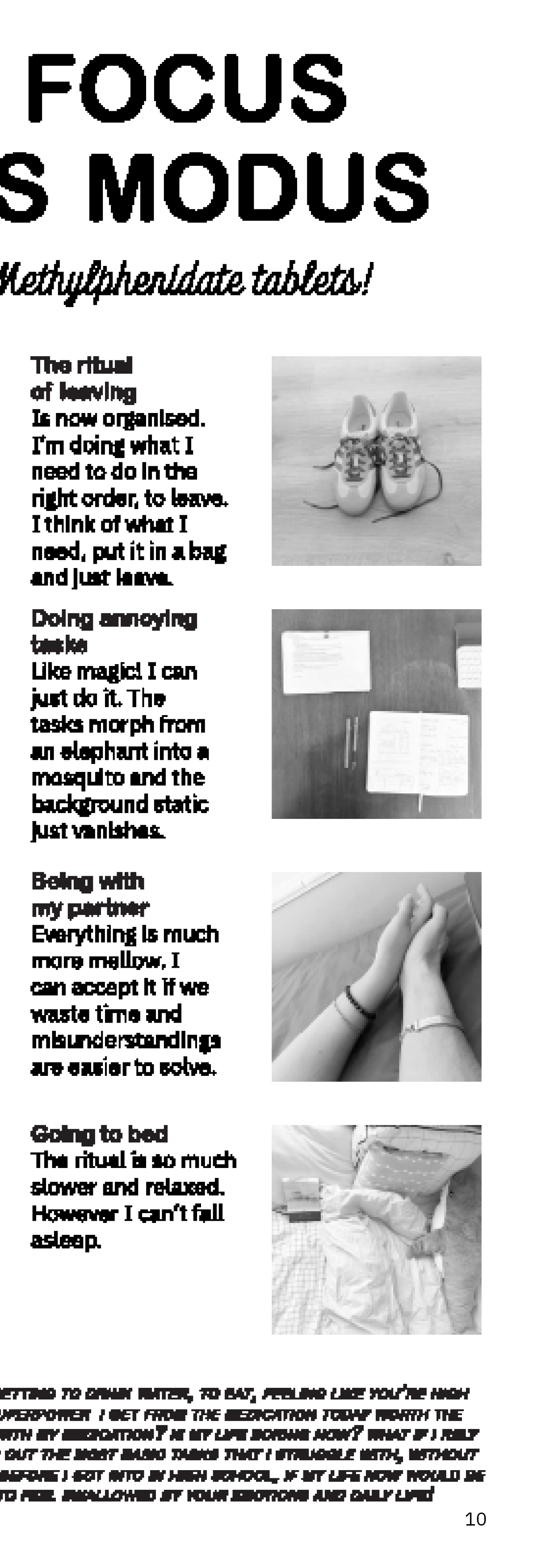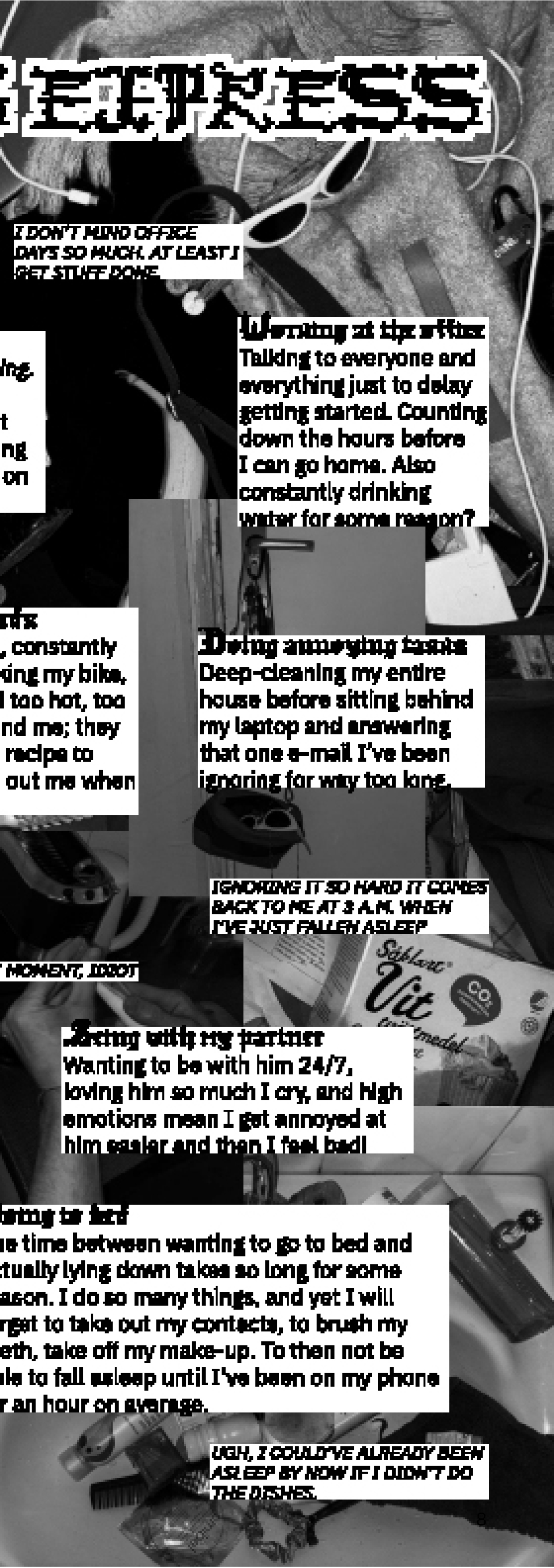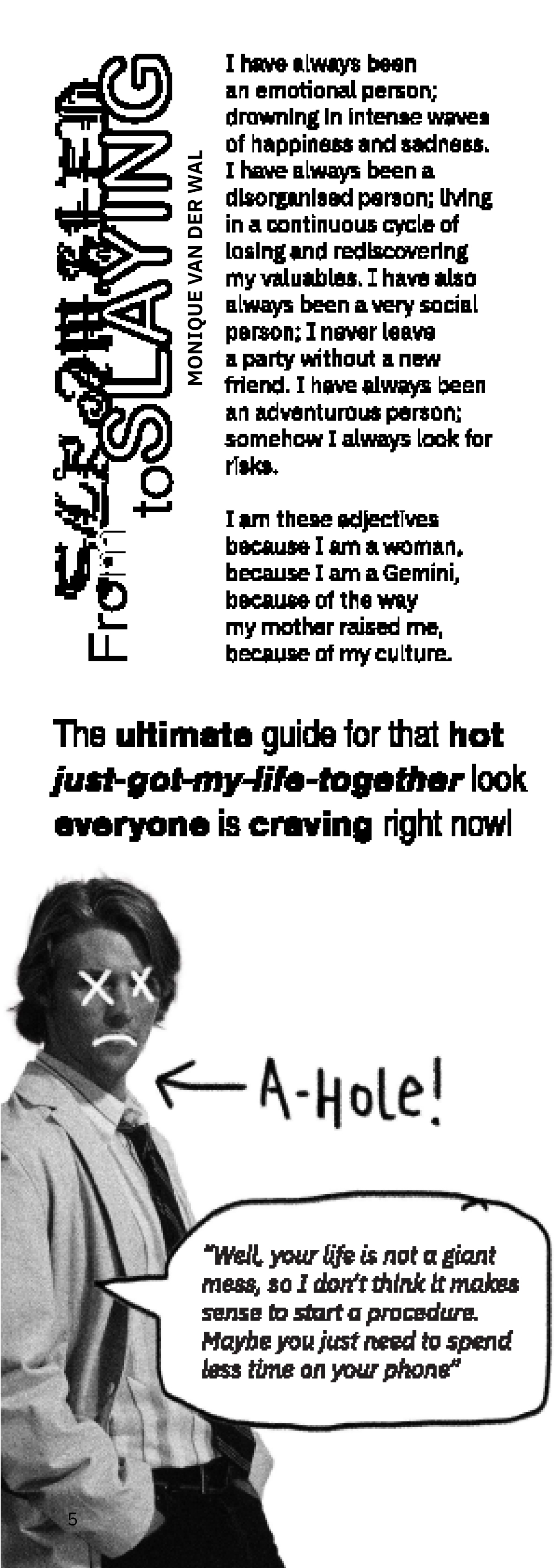 This is a preview of the zine. It is staple-bound; printed on riso, therefore the colors are black and white in digital format, but the printed copy is black and magenta on off-white paper.
