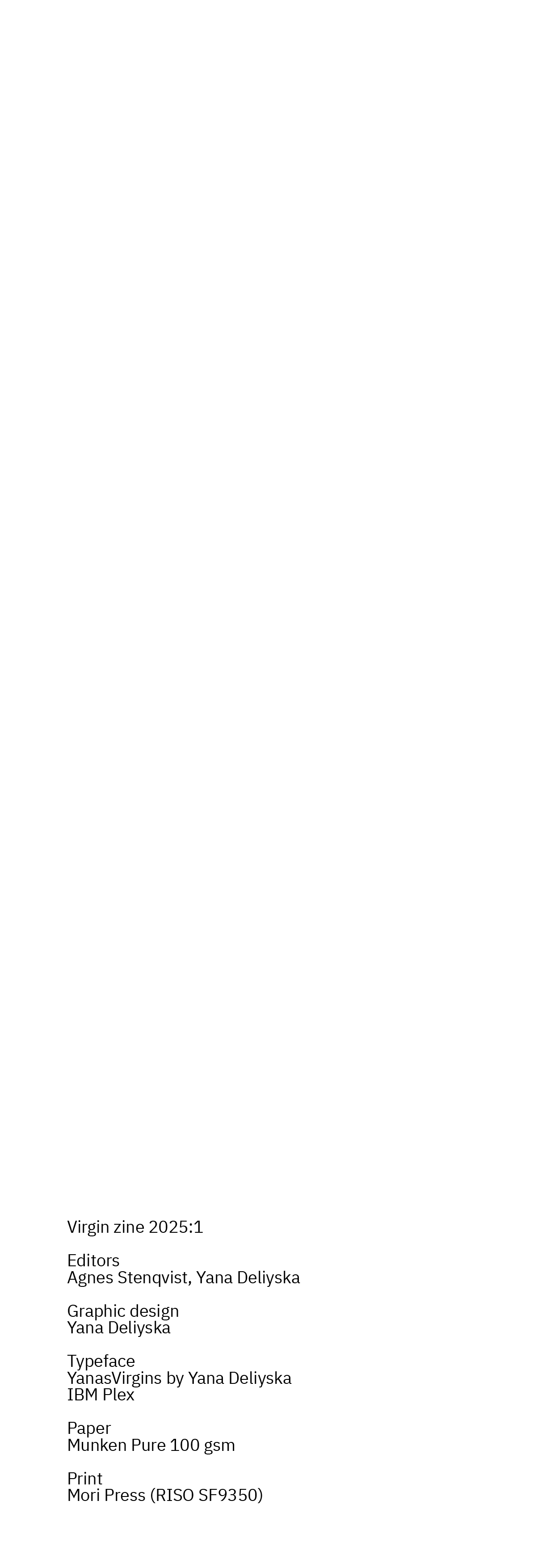 The zine is printed at Mori Press (Malmö) on RISO SF9350